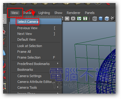 第3步 按下「View->Select Camera」,選取目前視角所使用的攝影機。
