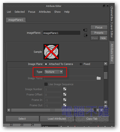 第5步 將imagePlane的Tpye屬性設為「Texture」(紋理)。