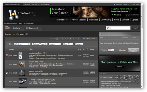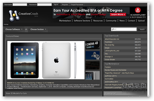 Maya之所以強大的原因就是它擁有強大的指令庫,能讓使用者以直接輸入程式指令的方式更精確地控制自己的物件場景。當然,程式也不一定要自己寫,可以利用別人寫好的Scripts或是Plugins套入到自己的Maya專案內使用。而今天我就稍微介紹這個Maya使用者一定要知道的網站「Creative Crash」,此網站為Maya提供了許多免費的插件、腳本、材質、模型等等多種常用到的東西。