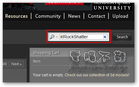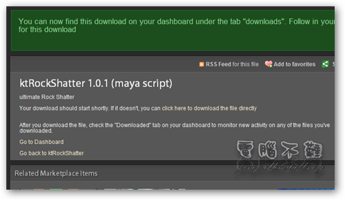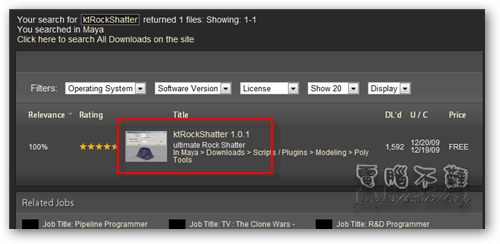 在此我就順便推薦一個別人寫好的Maya腳本,可以迅速地把模型以亂數大小分割成特定數量,達成模型碎裂的效果。首先到Creative Crash的maya分類中的搜尋框輸入「ktRockShatter」,然後開始搜尋。