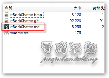 下載下來後可能是一個壓縮檔,而裡面又含有好幾個檔案。要注意的是檔案的副檔名,mel為Maya的腳本檔,其餘的檔案可能是介紹該腳本用的圖片或是文字檔案。
