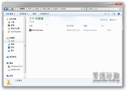 將Maya的mel檔案解壓縮並複製到Windows作業系統的「文件maya[你的Maya版本號碼]prefsscripts」路徑內。