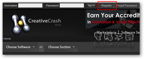 要使用Creative Crash,必須先成為該網站的會員。你可能會覺得申請會員很麻煩,其實一點也不,而且還是免費的!