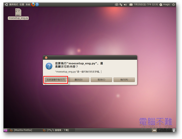 從官網上將moebuntu setup tool下載下來後,就能在終端機中執行。