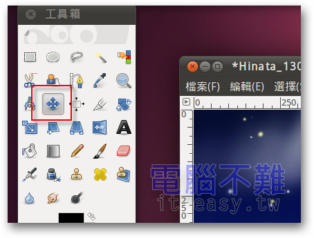 步驟三 從工具箱使用「移動工具」,將LOGO的位置移動到比較順眼的地方。