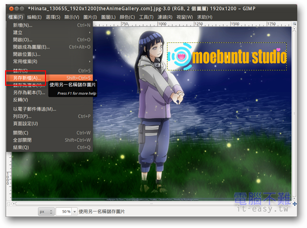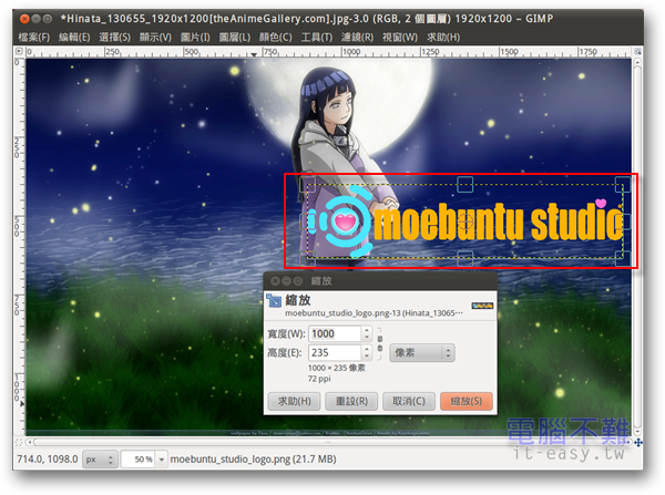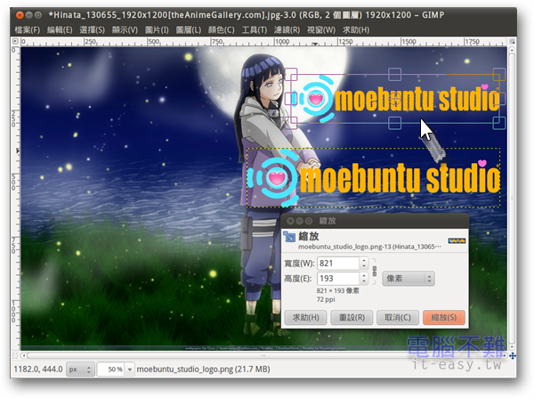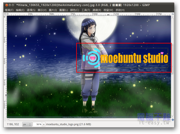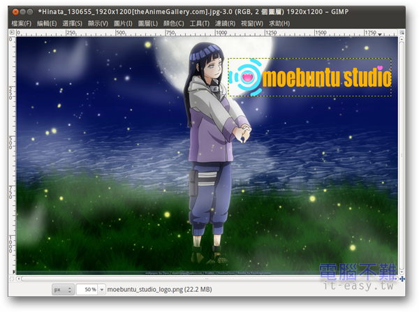 GIMP是一套足以媲美專業影像處理軟體(例如PhotoShop)的跨平台開放原始碼軟體,可從Ubuntu軟體中心直接將它安裝至系統中。如果想利用GIMP在圖片內加入moebuntu的LOGO,可以參考以下步驟。