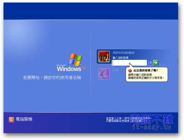 如果卡住的是Windows XP的一般帳戶,那麼只要利用安全模式進到Administrator帳戶,將該使用者的密碼刪除即可。但有時候會發現Administrator帳戶也被鎖上密碼了!