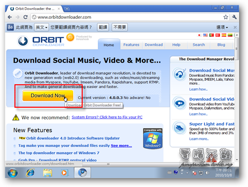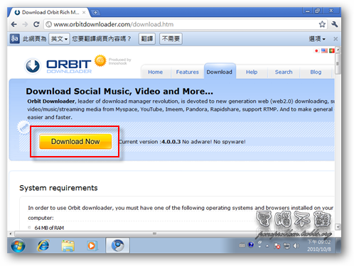 第1步 首先利用上面的網址連結到Orbit的官方網站,接著會看到大大的「Download Now」(立即下載)按鈕,別懷疑,用滑鼠點下去吧!