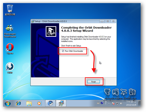 第9步 勾選「Run Orbit Downloader」,在按下「Finish」按鈕完成安裝後,開啟Orbit Downloader。