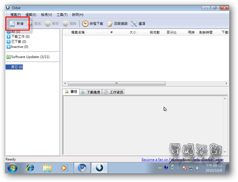 在Orbit,要加入檔案下載工作的話,只要按下左上角的「新增」按鈕即可。