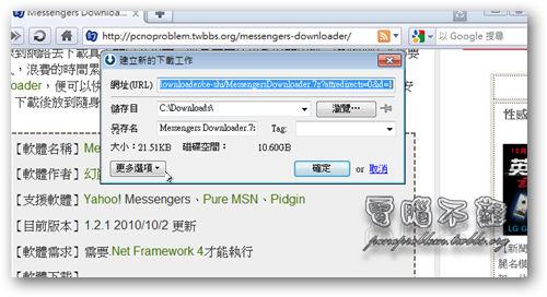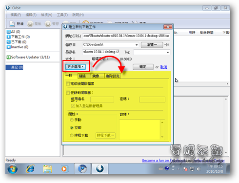 抑或你可以按下左下角的「更多選項」按鈕,來設定下載工作的進階屬性。