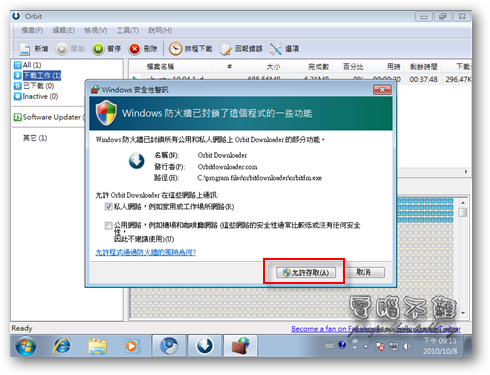 若Orbit被防火牆擋到了,記得將它設為允許存取連線。