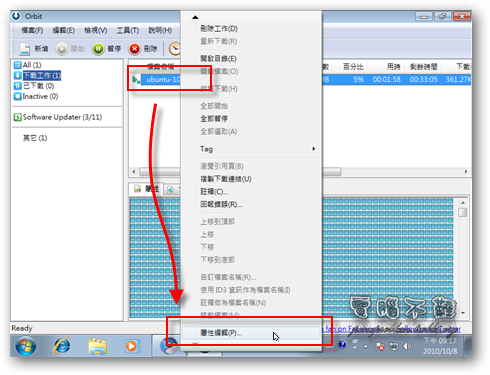 此時可以針對下載工作進行「滑鼠右鍵->屬性編輯」。