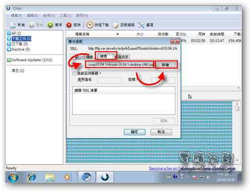 在「鏡像」標籤分頁中,將未用到的下載連結加進去。最後按下「確定」。