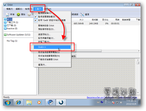 在Orbit中,可以按下上方功能表的「工具->Grab++」,開啟Grab++。