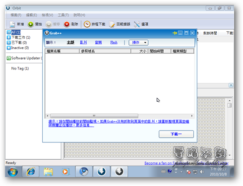 再回來看看Grab++,會看到清單上有東西了。勾選你要的項目,按下右下方的「下載」即可。