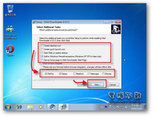 下半部是選擇要讓Orbit支援的瀏覽器,設定完後按下「Next >」。