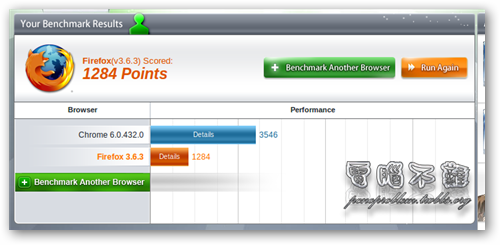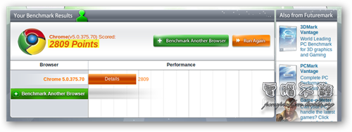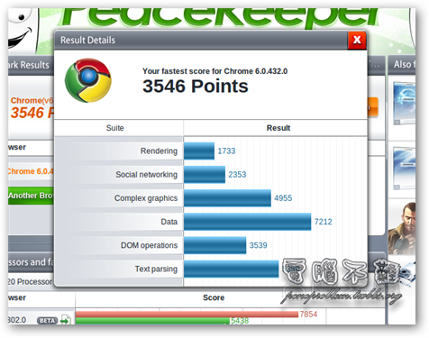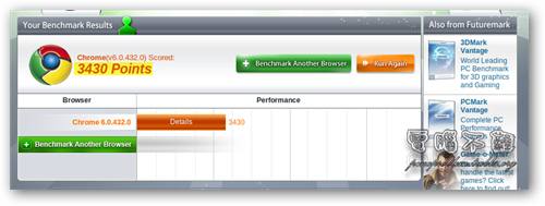 Google Chromium 6.0.432.0 得到3430點 (真高啊,想不到跟Chrome差那麼多,版本差距真是不容小覷)
