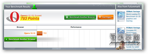 Opera 10.10 得到783點 (還以為它應該要更強的說)