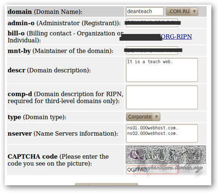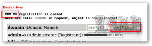 如果你選用.COM.RU,就會出現Errors in form。因為COM.RU不開放使用。