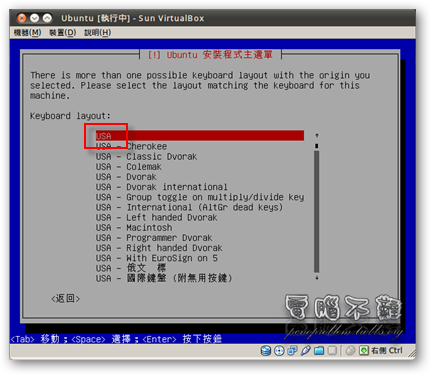 步驟二 放入Ubuntu Alternate CD,重新開機,等待光碟讀取,會出現語言選單,選擇一個您最習慣的語言吧!(以下均為中文(繁體)為例)