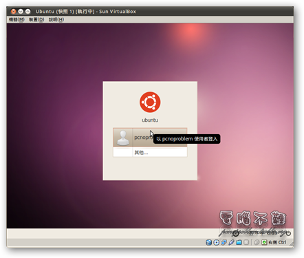步驟二一 安裝完成後,將光碟取出,用硬碟開機,就能進入Ubuntu了!