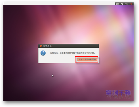 步驟十三 安裝完成,按下「現在就重新啟動電腦」。