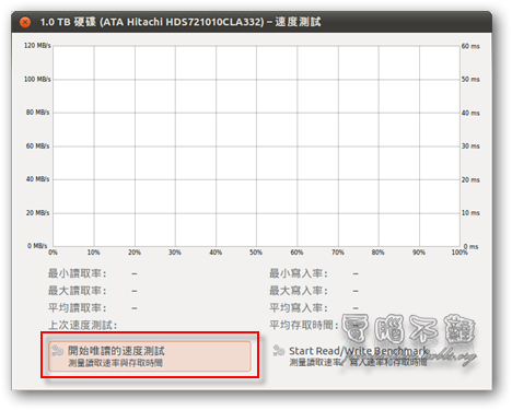 欲測試硬碟的讀寫速度,可以直接按下「速度測試」按鈕。