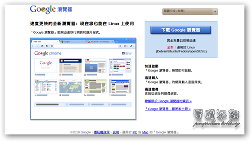 首先裡用上面的網址進入Google瀏覽器的頁面,按下右邊「下載 Google瀏覽器」的藍色按鈕。