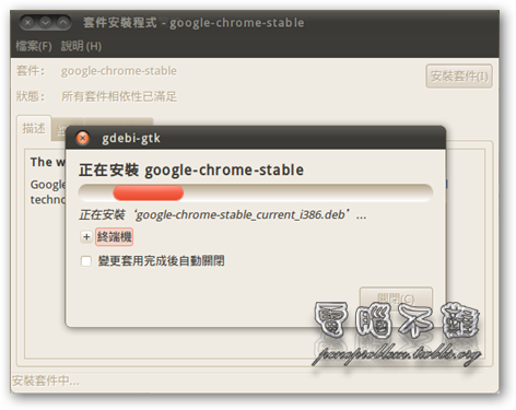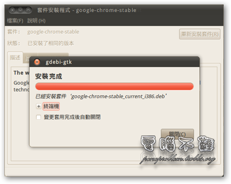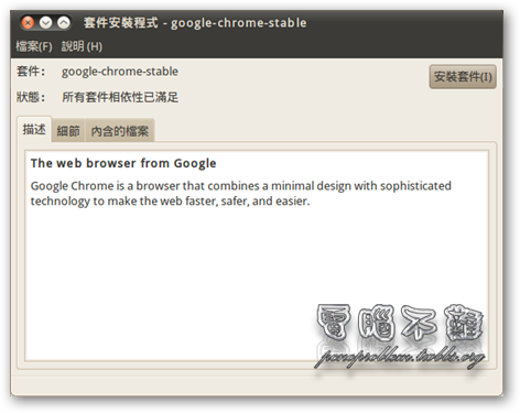 下載下來的檔案為deb套件檔,直接執行它。讓它跑一段時間後,按下「安裝套件」。