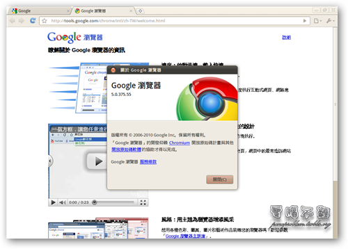 Google瀏覽器又分了兩種版本,Chrome和Chromium。前者為Google瀏覽器的成品;後者為Chrome的開放原始碼實驗計劃,即Chrome的前身。要成為Chrome,必須先從Chromium做起,因此Chromium的版本可以說是領先Chrome一大截,等到Chromium穩定後,才會發佈下一個Chrome版本。這樣說好了,Chromium雖然版本演進快速,但穩定度卻沒有Chrome好,畢竟Chrome是拿穩定的Chromium發佈出來的,但如果使用Chromium,卻可以提早享用到Chrome還沒有的新功能。這樣的比較或許還是很模糊,簡單來說,Chromium的版本比Chrome還新,更新還要更快,一天更新2次以上,如果你是最新版本和新功能的追求者,那就使用Chromium;如果你偏好穩定,那就用Chrome。