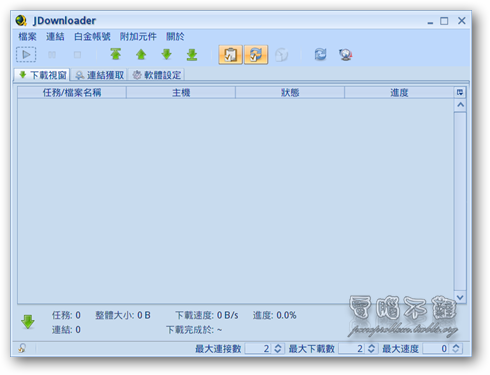 JDownloader是一款專門用來下載存放在免費空間(例如Megaupload、Badongo、RapidShare)的檔案,除了能夠進行自動化排程下載多檔案的動作外,針對部分空間還能支援的檔案續傳以及跳過輸入認證碼的步驟,讓常常使用免費空間下載檔案的人省下不少在手動操作上的時間。JDownloader是一款基於JAVA的軟體,因此它能夠輕而易舉的跨平台,無論你是用Windows、Linux或是MAC作業系統,只要電腦裡有裝了Java Runtime Environment (JRE),都可以使用JDownloader!