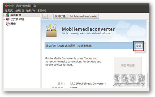 注意:Mobile Media Converter雖然能支援Linux平台,但僅支援32位元的版本。如果你的Ubuntu是64位元,Mobile Media Converter可能將會無法使用。