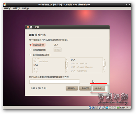 步驟九 選擇鍵盤排列方式。基本上不用去動它,按下「向前」即可。