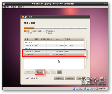 步驟十一 反白要使用的可用空間,按下「加入」按鈕。