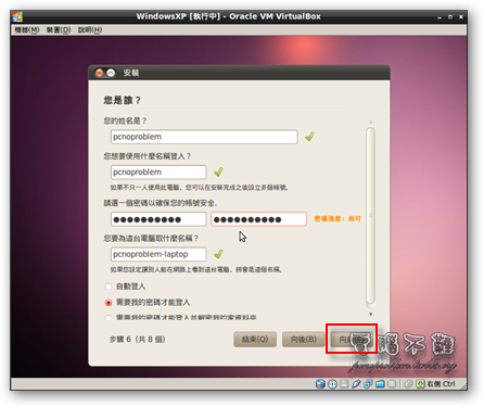 步驟十五 設定使用者,照自己喜好設定,按下「向前」。