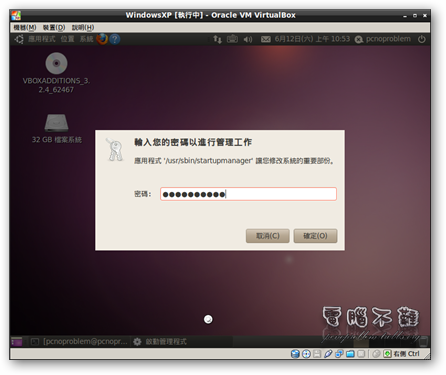 步驟三 開啟後,要先輸入密碼,就是你剛才安裝Ubuntu的時候打的密碼。