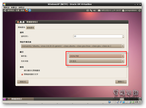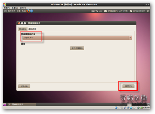 步驟四 等候幾秒鐘的時間讓開機管理程式掃描設定值,然後按照自己的喜好去設定吧!建議開機顯示解析度和開機選單解析度設為一樣的,這樣從GRUB清單到開機畫面解析度才不會跳來跳去。設定完成後按「關閉」。
