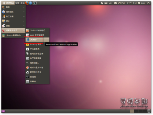 安裝好Shutter後,在「應用程式->附屬應用程式」下,便可找到Shutter。