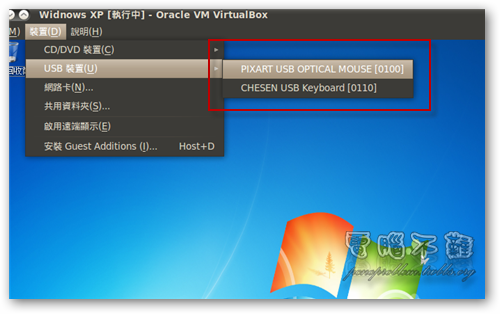 步驟五 重新開機後,執行VirtualBox試試看,看看你的USB裝置是不是可以選擇了呢?