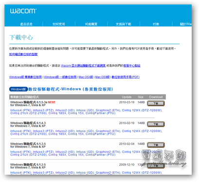 Wacom驅動程式下載:http://www.wacom.com.tw/download_tc/