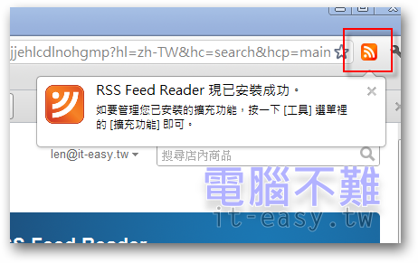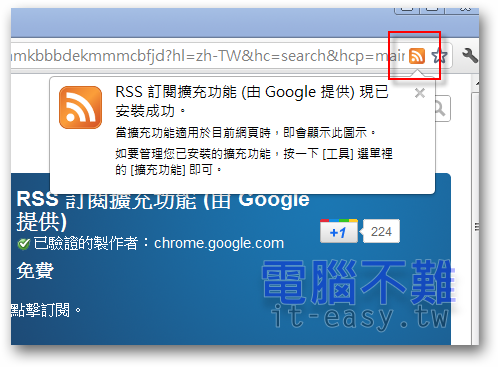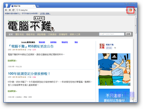 Google瀏覽器也可以藉由擴充功能的方式將RSS圖示加到網址列的右邊。以下介紹兩種RSS的擴充功能。