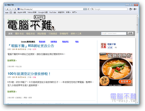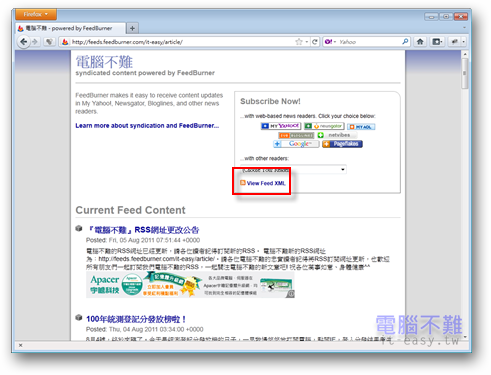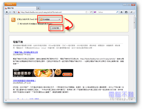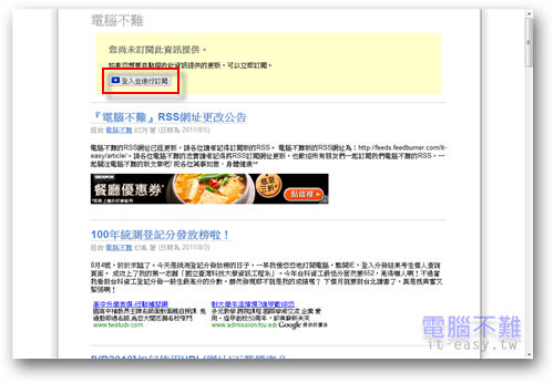 那麼要如何訂閱網站的RSS呢?我以電腦不難的RSS為例。