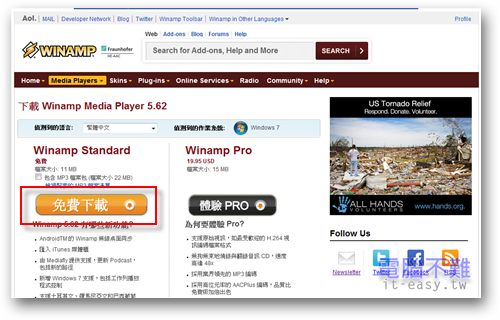 Winamp繁體中文下載頁:http://www.winamp.com/media-player/traditional-chinese