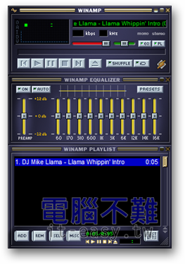 步驟十三 開啟Winamp主程式。剛開始可能會要你先匯入媒體櫃,請自行決定是否要匯入,我個人是習慣關掉媒體櫃,然後將歌曲匯入到下方的播放清單內,這樣看起來比較簡潔清爽。