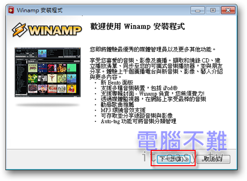 步驟一 首先利用上面的連結進入Winamp的繁體中文下載頁,然後按下頁面中的「直接下載」按鈕即可開始下載Winamp。