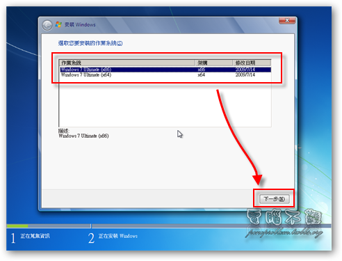 第五步 如果光碟包含兩種以上的作業系統,請選擇要安裝的項目後再按下「下一步」。