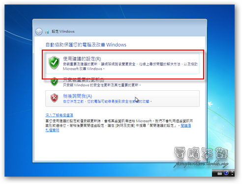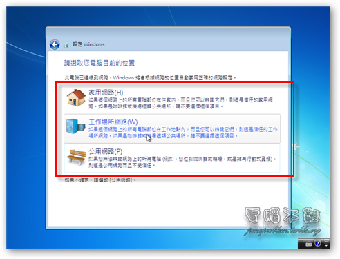 第一步 放入Windows 7安裝光碟,並使用光碟開機。若你不會使用光碟開機,請參考這篇。