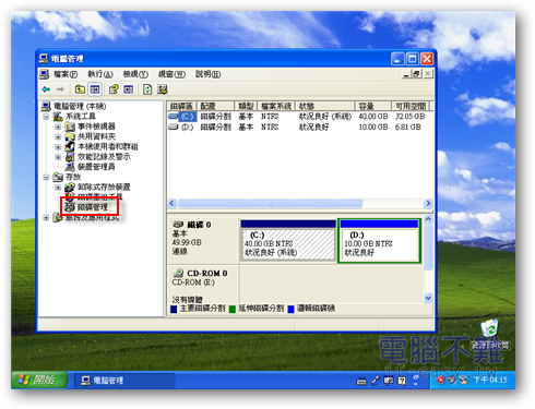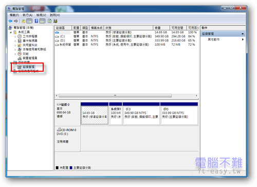 在左方項目清單中找到「磁碟管理」。
