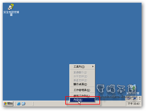 第三步 開始工具列上按下滑鼠右鍵,點選「內容」。